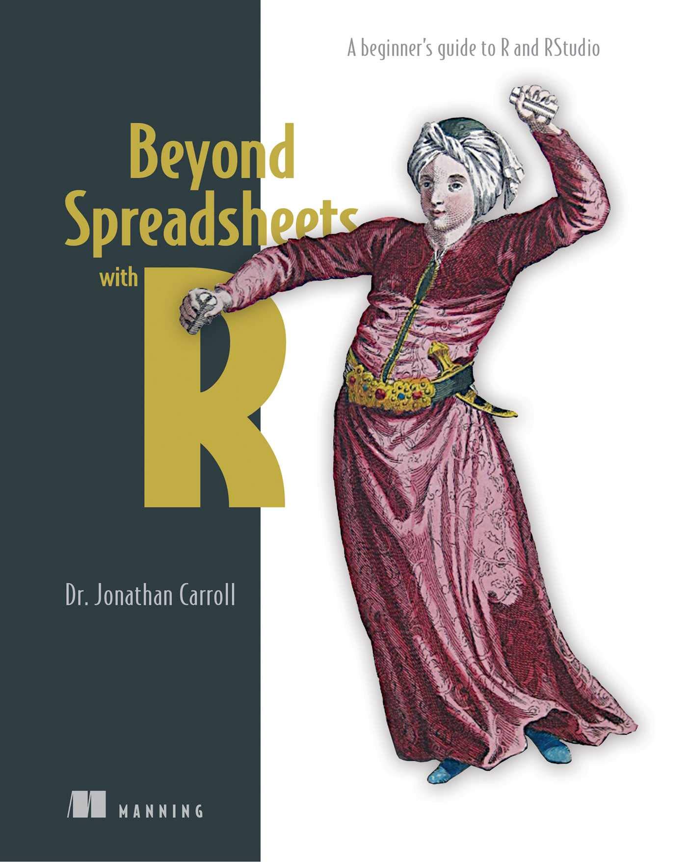 SummaryBeyond Spreadsheets with R shows you how to take raw data and transform it for use in computations, tables, graphs, and more. You'll build on simple programming techniques like loops and conditionals to create your own custom functions. You'll come away with a toolkit of strategies for analyzing and visualizing data of all sorts using R and RStudio.Purchase of the print book includes a free eBook in PDF, Kindle, and ePub formats from Manning Publications.About the TechnologySpreadsheets are powerful tools for many tasks, but if you need to interpret, interrogate, and present data, they can feel like the wrong tools for the task. That's when R programming is the way to go. The R programming language provides a comfortable environment to properly handle all types of data. And within the open source RStudio development suite, you have at your fingertips easy-to-use ways to simplify complex manipulations and create reproducible processes for analysis and reporting.About the BookWith Beyond Spreadsheets with R you'll learn how to go from raw data to meaningful insights using R and RStudio. Each carefully crafted chapter covers a unique way to wrangle data, from understanding individual values to interacting with complex collections of data, including data you scrape from the web. You'll build on simple programming techniques like loops and conditionals to create your own custom functions. You'll come away with a toolkit of strategies for analyzing and visualizing data of all sorts.What's insideHow to start programming with R and RStudioUnderstanding and implementing important R structures and operatorsInstalling and working with R packagesTidying, refining, and plotting your dataAbout the ReaderIf you're comfortable writing formulas in Excel, you're ready for this book.About the AuthorDr Jonathan Carroll is a data science consultant providing R programming services. He holds a PhD in theoretical physics.Table of ContentsIntroducing data and the R languageGetting to know R data typesMaking new data valuesUnderstanding the tools you'll use: FunctionsCombining data valuesSelecting data valuesDoing things with lots of dataDoing things conditionally: Control structuresVisualizing data: PlottingDoing more with your data with extensions